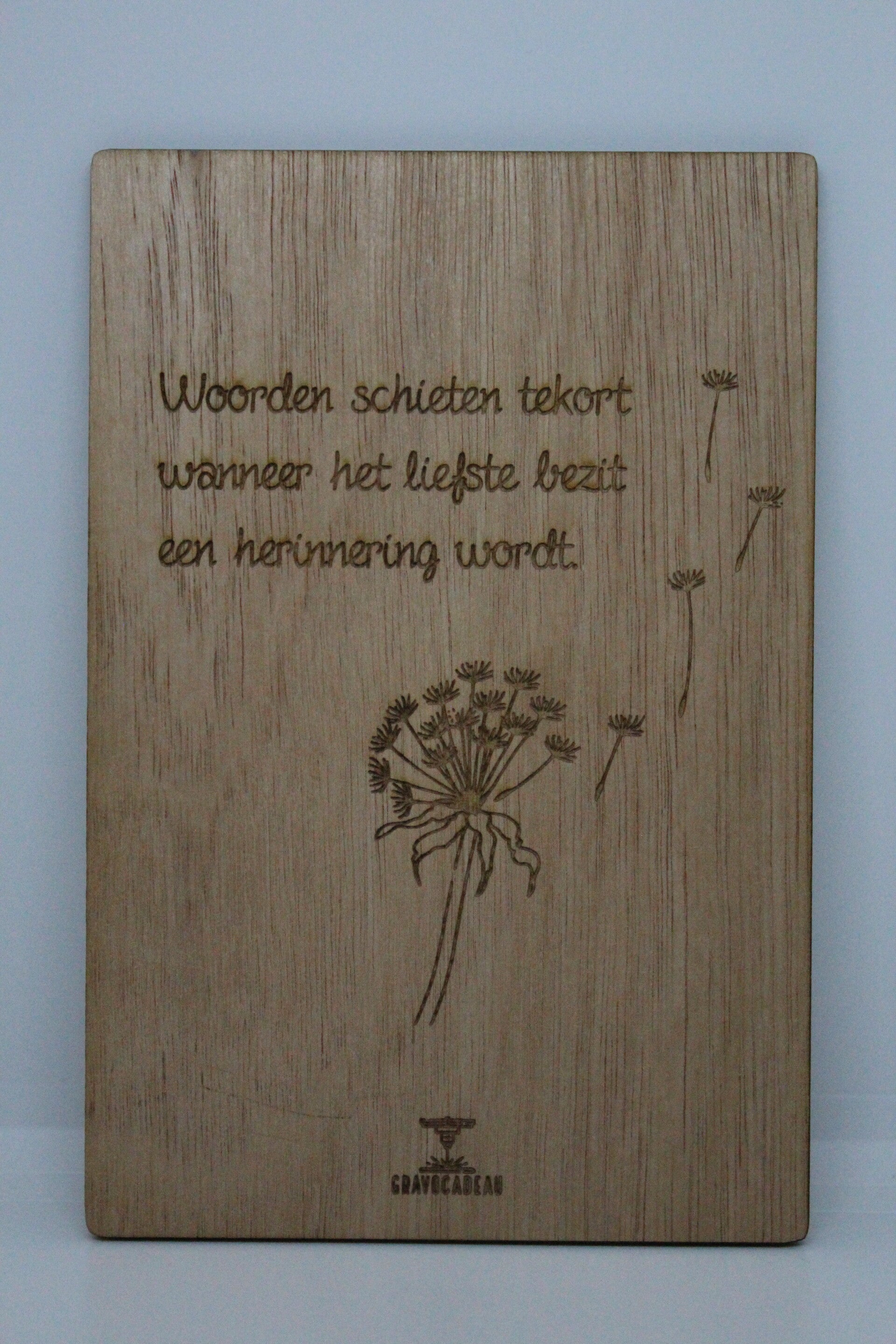 Zend jouw medeleven in de vorm van een stevige houten kaart. Deze is subtiel opgemaakt uit de warmste materialen zodat het mee de steun geeft die jij wil meegeven met jouw rouwwensen.