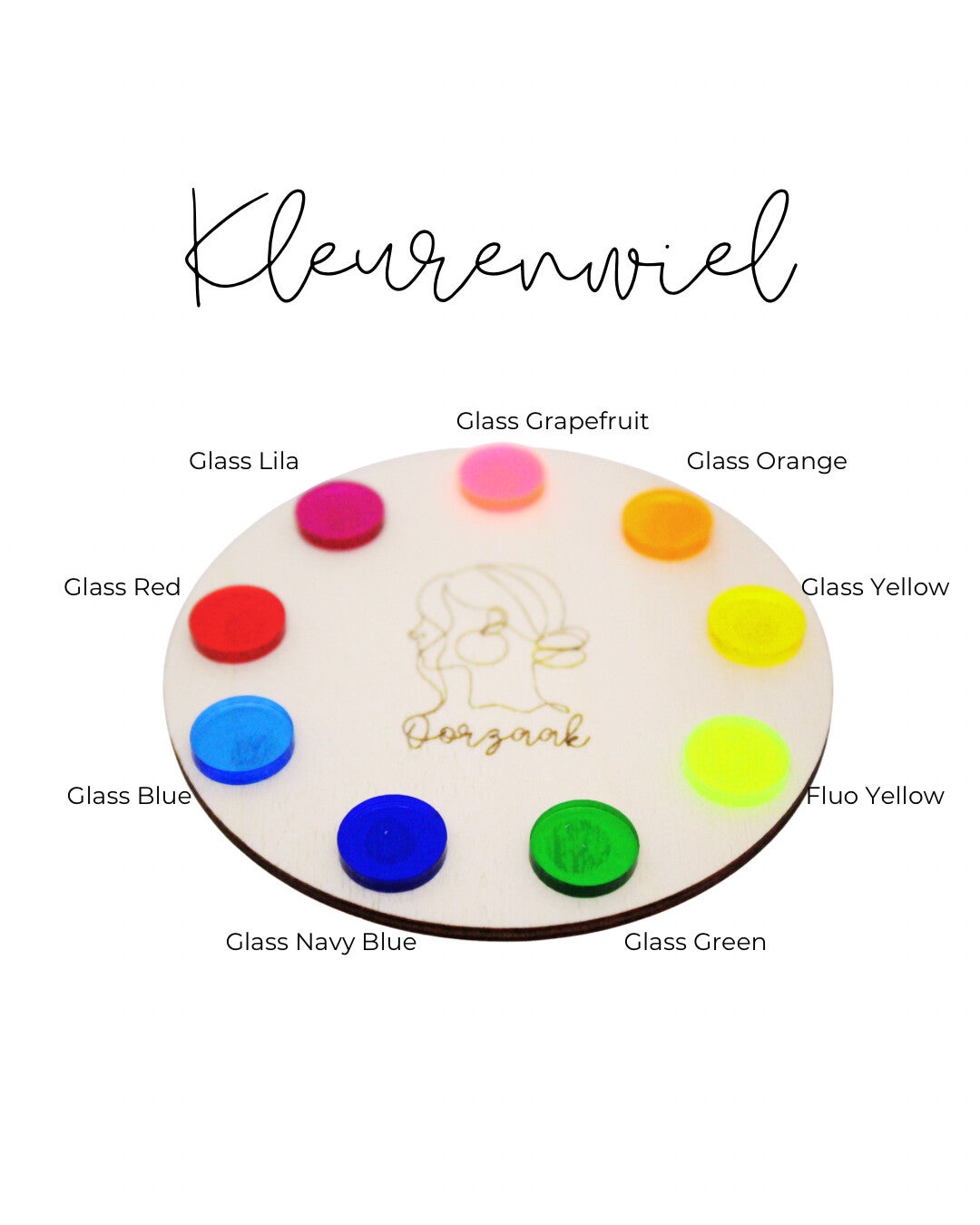 Kijk op het kleurenwiel welke variant je wenst en noteer.