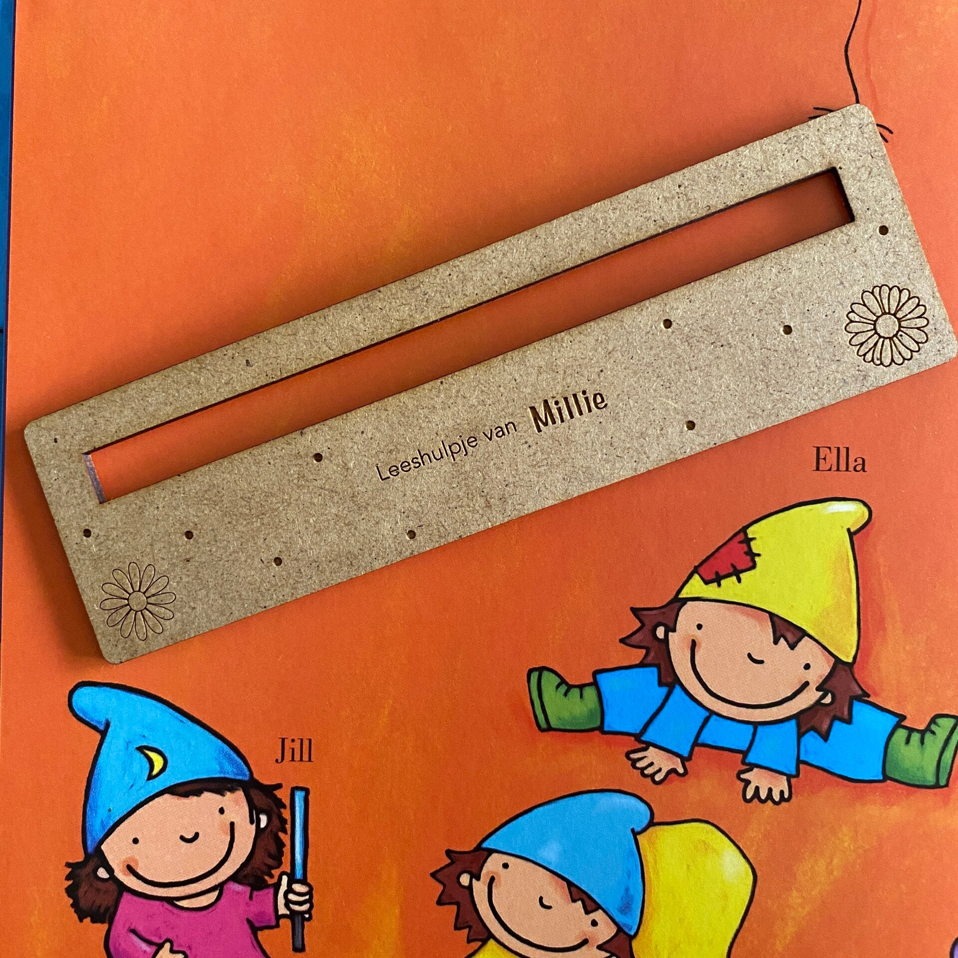 Deze leeshulp is personaliseerbaar met naam en figuurtje naar keuze. Zo wordt lezen een plezierige activiteit voor je kind!